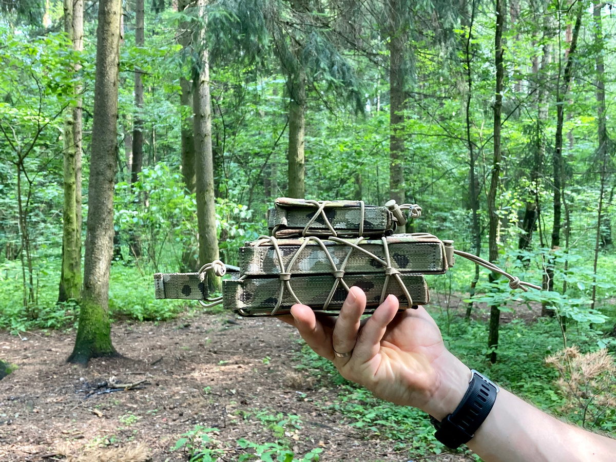 - Гибкость и прочность: Регулируемый эластичный шнур со стоппером, вплетенный в прочные стропы шириной 2,5 см, создает гибкую и одновременно надежную систему удержания, адаптирующуюся к форме магазина.